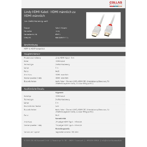 Jetzt anmeldenProduktinformationen "Lindy HDMI-Kabel - HDMI männlich zu HDMI männlich"