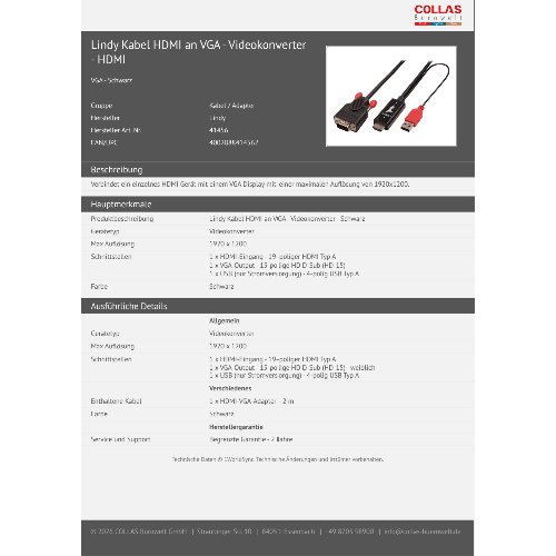 Jetzt anmeldenProduktinformationen "Lindy Kabel HDMI an VGA - Videokonverter - HDMI"