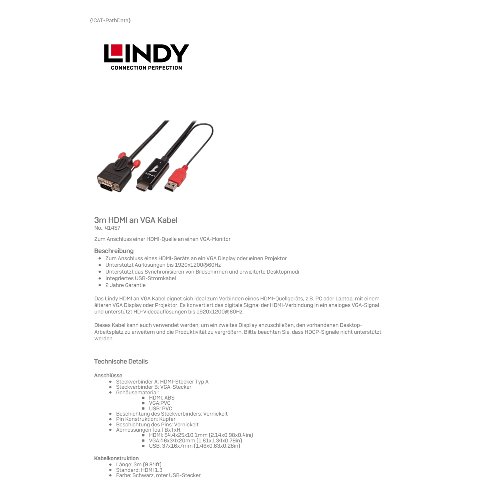 Jetzt anmeldenProduktinformationen "Lindy Kabel HDMI an VGA - Videokonverter - HDMI"