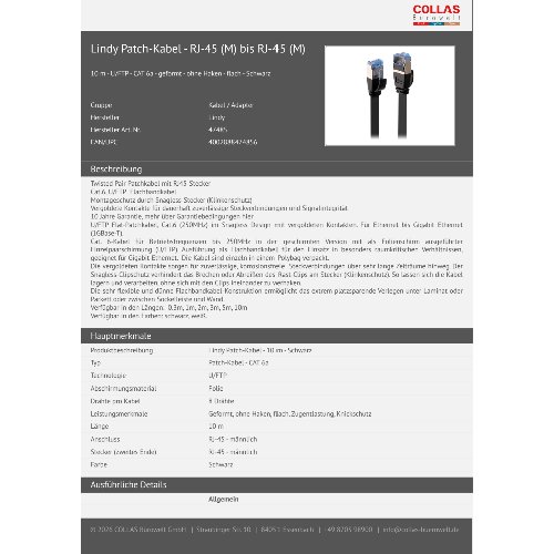 Jetzt anmeldenProduktinformationen "Lindy Patch-Kabel - RJ-45 (M) bis RJ-45 (M)"
