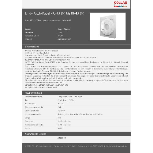 Jetzt anmeldenProduktinformationen "Lindy Patch-Kabel - RJ-45 (M) bis RJ-45 (M)"