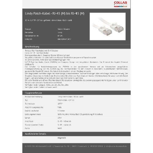 Jetzt anmeldenProduktinformationen "Lindy Patch-Kabel - RJ-45 (M) bis RJ-45 (M)"