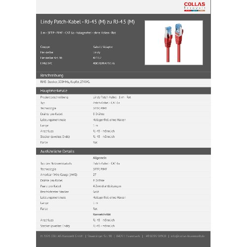 Jetzt anmeldenProduktinformationen "Lindy Patch-Kabel - RJ-45 (M) zu RJ-45 (M)"