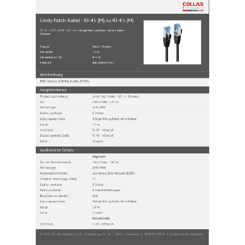 Jetzt anmeldenProduktinformationen "Lindy Patch-Kabel - RJ-45 (M) zu RJ-45 (M)"