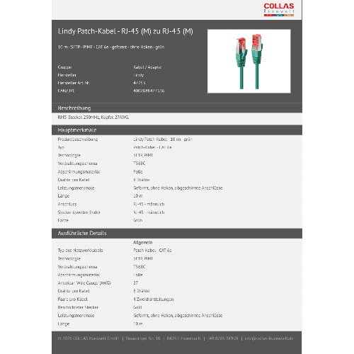 Jetzt anmeldenProduktinformationen "Lindy Patch-Kabel - RJ-45 (M) zu RJ-45 (M)"