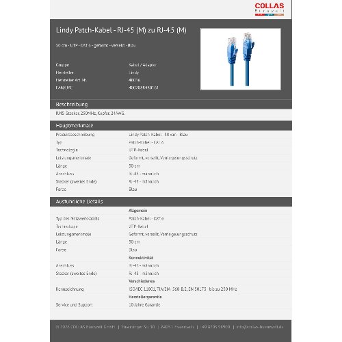 Jetzt anmeldenProduktinformationen "Lindy Patch-Kabel - RJ-45 (M) zu RJ-45 (M)"