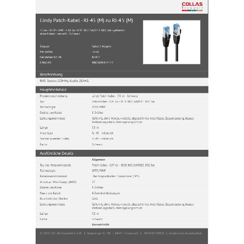 Jetzt anmeldenProduktinformationen "Lindy Patch-Kabel - RJ-45 (M) zu RJ-45 (M)"