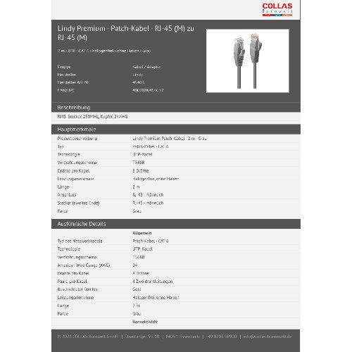 Jetzt anmeldenProduktinformationen "Lindy Premium - Patch-Kabel - RJ-45 (M) zu RJ-45 (M)"