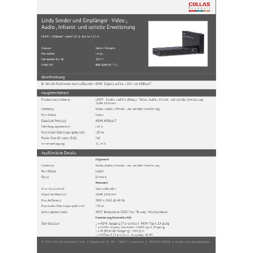 Jetzt anmeldenProduktinformationen "Lindy Sender und Empfänger - Video-, Audio-, Infrarot- und serielle Erweiterung"