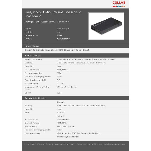 Jetzt anmeldenProduktinformationen "Lindy Video-, Audio-, Infrarot- und serielle Erweiterung"