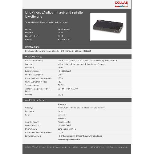 Jetzt anmeldenProduktinformationen "Lindy Video-, Audio-, Infrarot- und serielle Erweiterung"