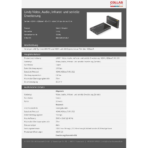 Jetzt anmeldenProduktinformationen "Lindy Video-, Audio-, Infrarot- und serielle Erweiterung"