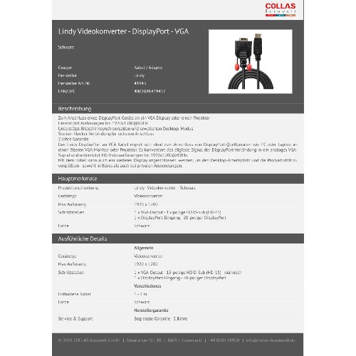 Jetzt anmeldenProduktinformationen "Lindy Videokonverter - DisplayPort - VGA"