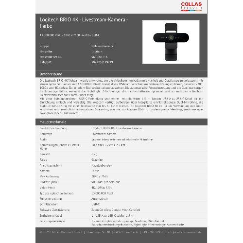 Jetzt anmeldenProduktinformationen "Logitech BRIO 4K - Livestream-Kamera - Farbe"