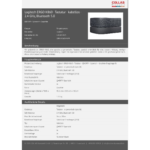 Produktinformationen "Logitech ERGO K860 - Tastatur - kabellos - 2.4 GHz, Bluetooth 5.0"