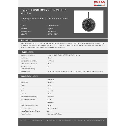 Jetzt anmeldenProduktinformationen "Logitech EXPANSION MIC FOR MEETUP - Mikrofon"