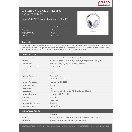 Jetzt anmeldenProduktinformationen "Logitech G Astro A20 X - Headset - ohrumschließend"
