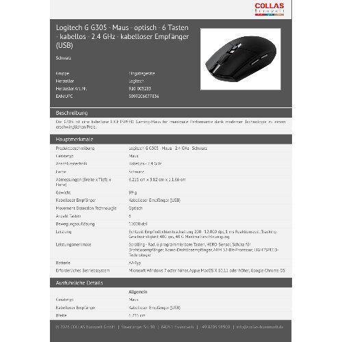 Jetzt anmeldenProduktinformationen "Logitech G G305 - Maus - optisch - 6 Tasten - kabellos - 2.4 GHz - kabelloser Empfänger (USB)"