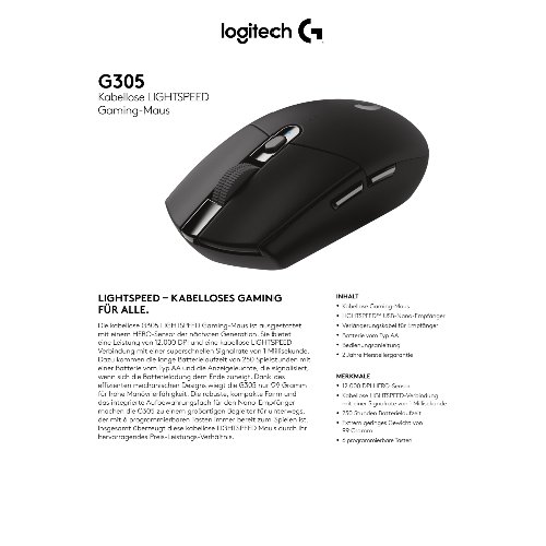 - Die G305 ist eine kabellose LIGHTSPEED Gaming-Maus für maximale Performance dank moderner Technologie zu einem erschwinglichen Preis.