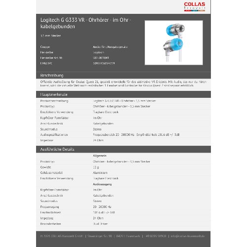 Jetzt anmeldenProduktinformationen "Logitech G G333 VR - Ohrhörer - im Ohr - kabelgebunden"