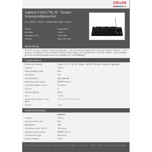 Jetzt anmeldenProduktinformationen "Logitech G G413 TKL SE - Tastatur - hintergrundbeleuchtet"