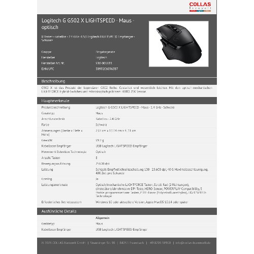 Jetzt anmeldenProduktinformationen "Logitech G G502 X LIGHTSPEED - Maus - optisch"
