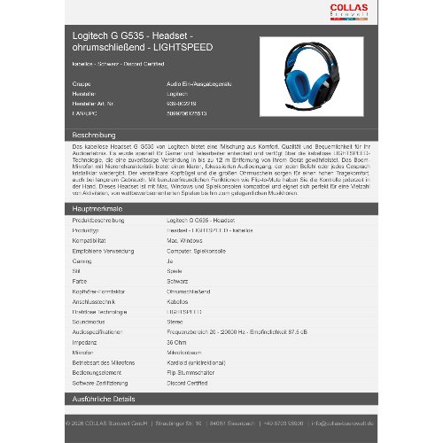 Jetzt anmeldenProduktinformationen "Logitech G G535 - Headset - ohrumschließend - LIGHTSPEED"