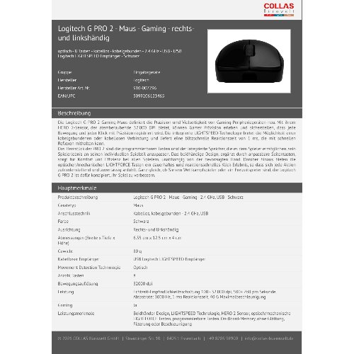 Jetzt anmeldenProduktinformationen "Logitech G PRO 2 - Maus - Gaming - rechts- und linkshändig"