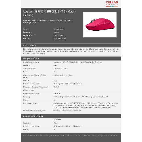 Jetzt anmeldenProduktinformationen "Logitech G PRO X SUPERLIGHT 2 - Maus - Gaming"