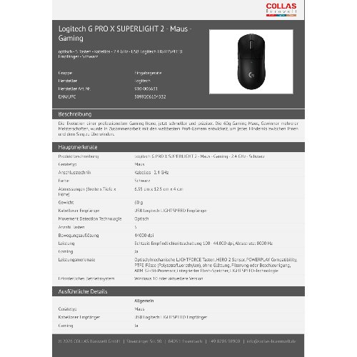 Jetzt anmeldenProduktinformationen "Logitech G PRO X SUPERLIGHT 2 - Maus - Gaming"