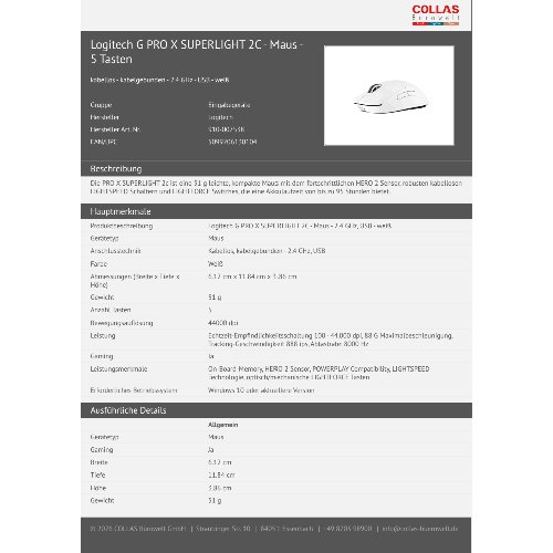 Jetzt anmeldenProduktinformationen "Logitech G PRO X SUPERLIGHT 2C - Maus - 5 Tasten"