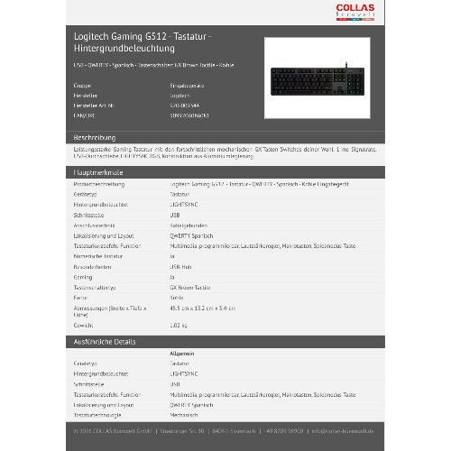 Jetzt anmeldenProduktinformationen "Logitech Gaming G512 - Tastatur - Hintergrundbeleuchtung"