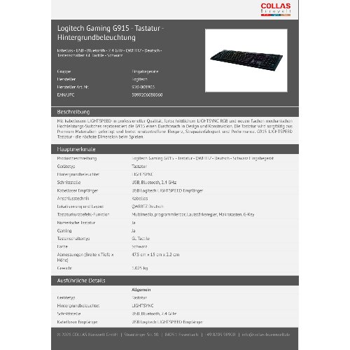 Jetzt anmeldenProduktinformationen "Logitech Gaming G915 - Tastatur - Hintergrundbeleuchtung"