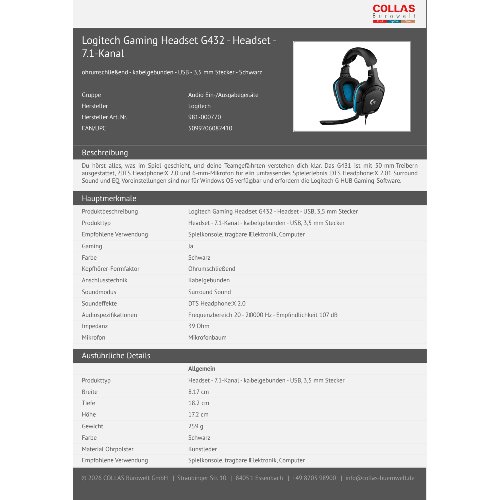 Jetzt anmeldenProduktinformationen "Logitech Gaming Headset G432 - Headset - 7.1-Kanal"