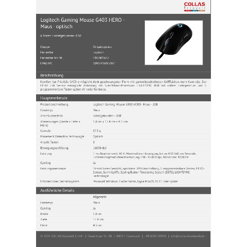 Jetzt anmeldenProduktinformationen "Logitech Gaming Mouse G403 HERO - Maus - optisch"
