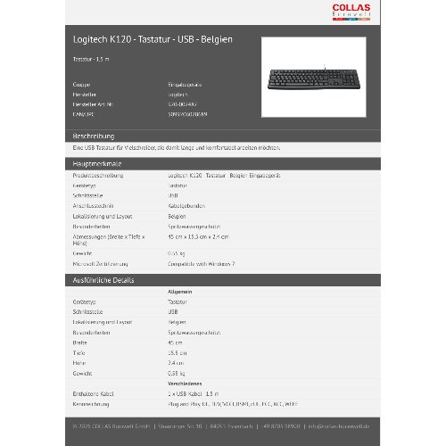 Jetzt anmeldenProduktinformationen "Logitech K120 - Tastatur - USB - Belgien"