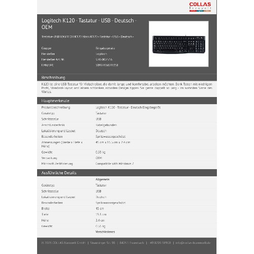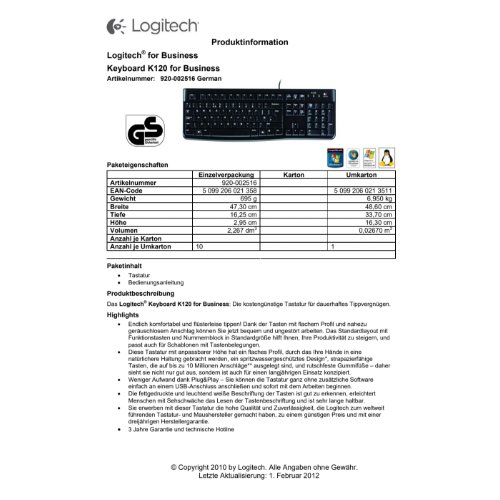 Jetzt anmeldenProduktinformationen "Logitech K120 - Tastatur - USB - Deutsch - OEM"