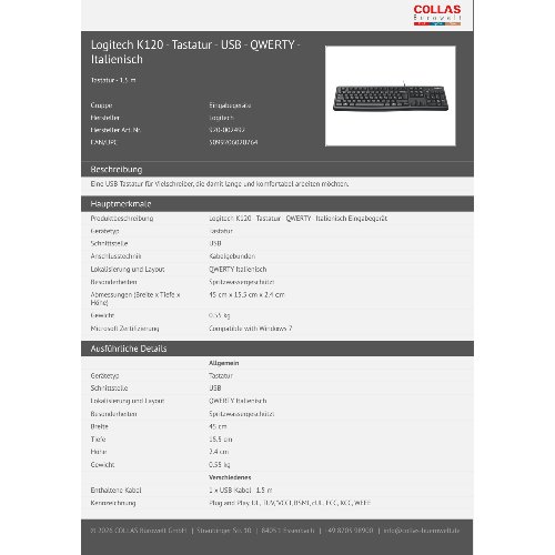 Jetzt anmeldenProduktinformationen "Logitech K120 - Tastatur - USB - QWERTY - Italienisch"