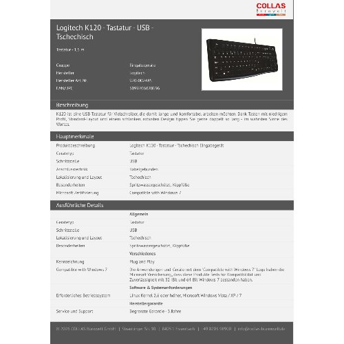 Jetzt anmeldenProduktinformationen "Logitech K120 - Tastatur - USB - Tschechisch"