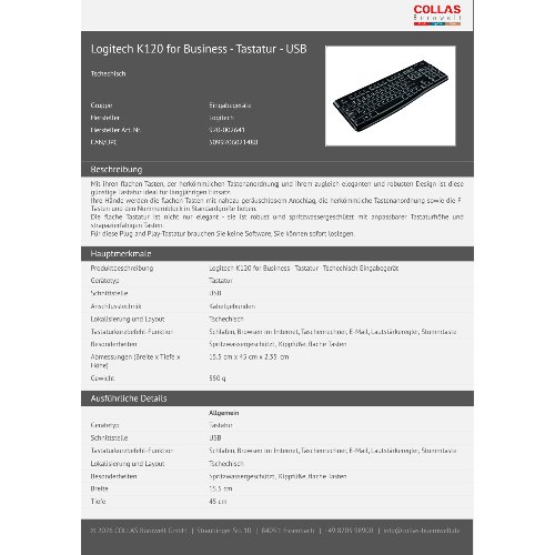 Jetzt anmeldenProduktinformationen "Logitech K120 for Business - Tastatur - USB"