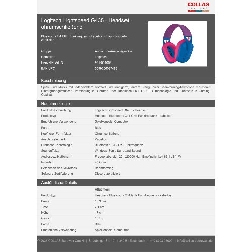 Jetzt anmeldenProduktinformationen "Logitech Lightspeed G435 - Headset - ohrumschließend"