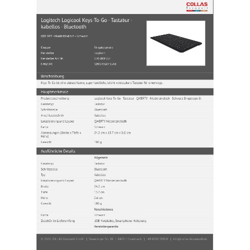 Jetzt anmeldenProduktinformationen "Logitech Logicool Keys-To-Go - Tastatur - kabellos - Bluetooth"