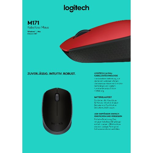 Jetzt anmeldenProduktinformationen "Logitech M171 - Maus - kabellos - 2.4 GHz - kabelloser Empfänger (USB)"