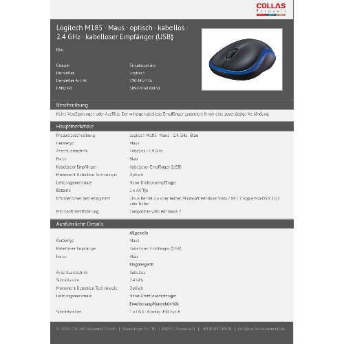 Jetzt anmeldenProduktinformationen "Logitech M185 - Maus - optisch - kabellos - 2.4 GHz - kabelloser Empfänger (USB)"