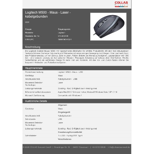 Jetzt anmeldenProduktinformationen "Logitech M500 - Maus - Laser - kabelgebunden"