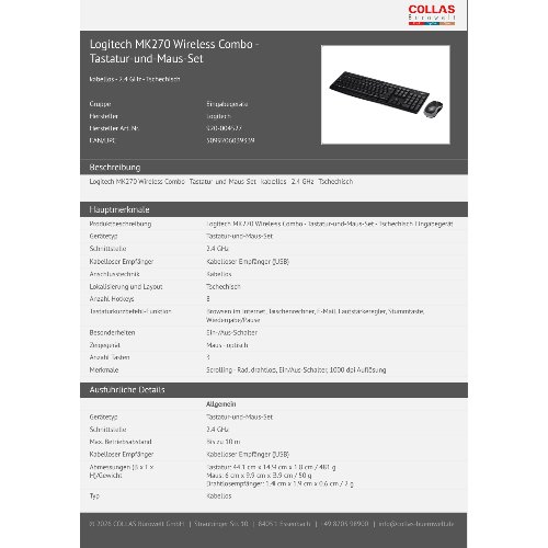 Logitech MK270 Wireless Combo - Tastatur-und-Maus-Set - kabellos - 2.4 GHz - Tschechisch