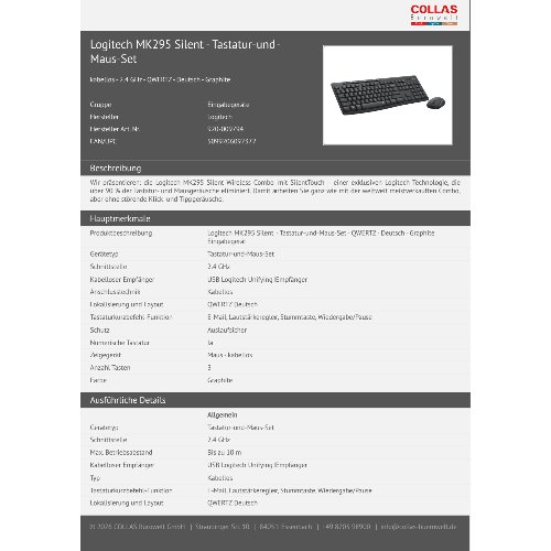 Jetzt anmeldenProduktinformationen "Logitech MK295 Silent - Tastatur-und-Maus-Set"