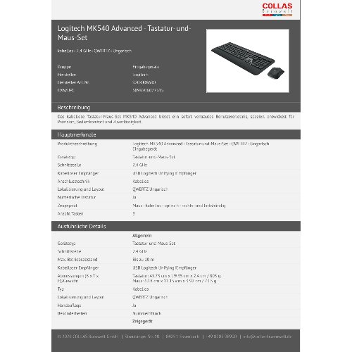 - Das kabellose Tastatur-Maus-Set MK540 Advanced bietet ein sofort vertrautes Benutzererlebnis, speziell entwickelt für Präzision, Bedienkomfort und Zuverlässigkeit.