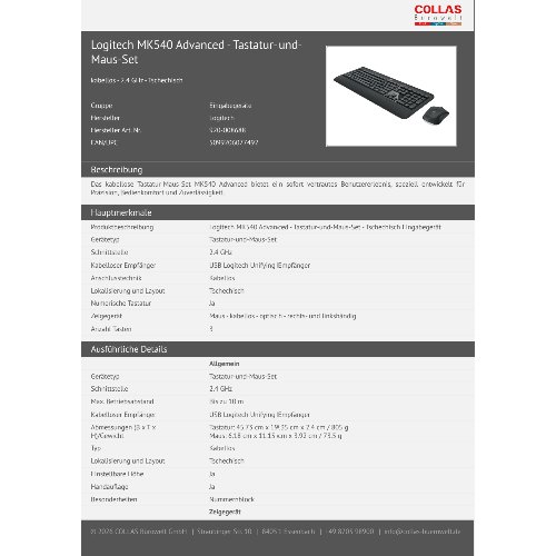 - Das kabellose Tastatur-Maus-Set MK540 Advanced bietet ein sofort vertrautes Benutzererlebnis, speziell entwickelt für Präzision, Bedienkomfort und Zuverlässigkeit.