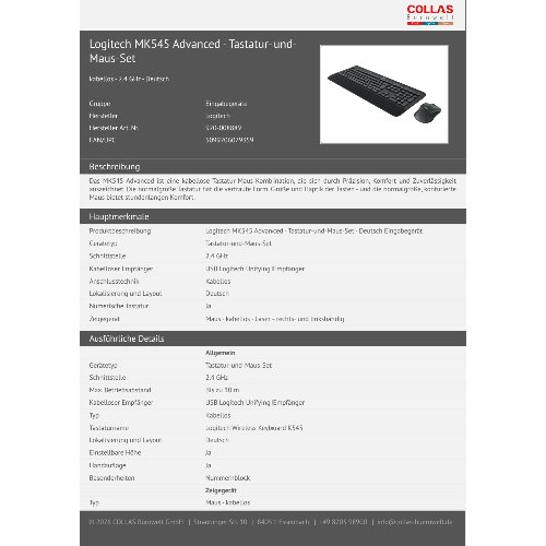Jetzt anmeldenProduktinformationen "Logitech MK545 Advanced - Tastatur-und-Maus-Set"